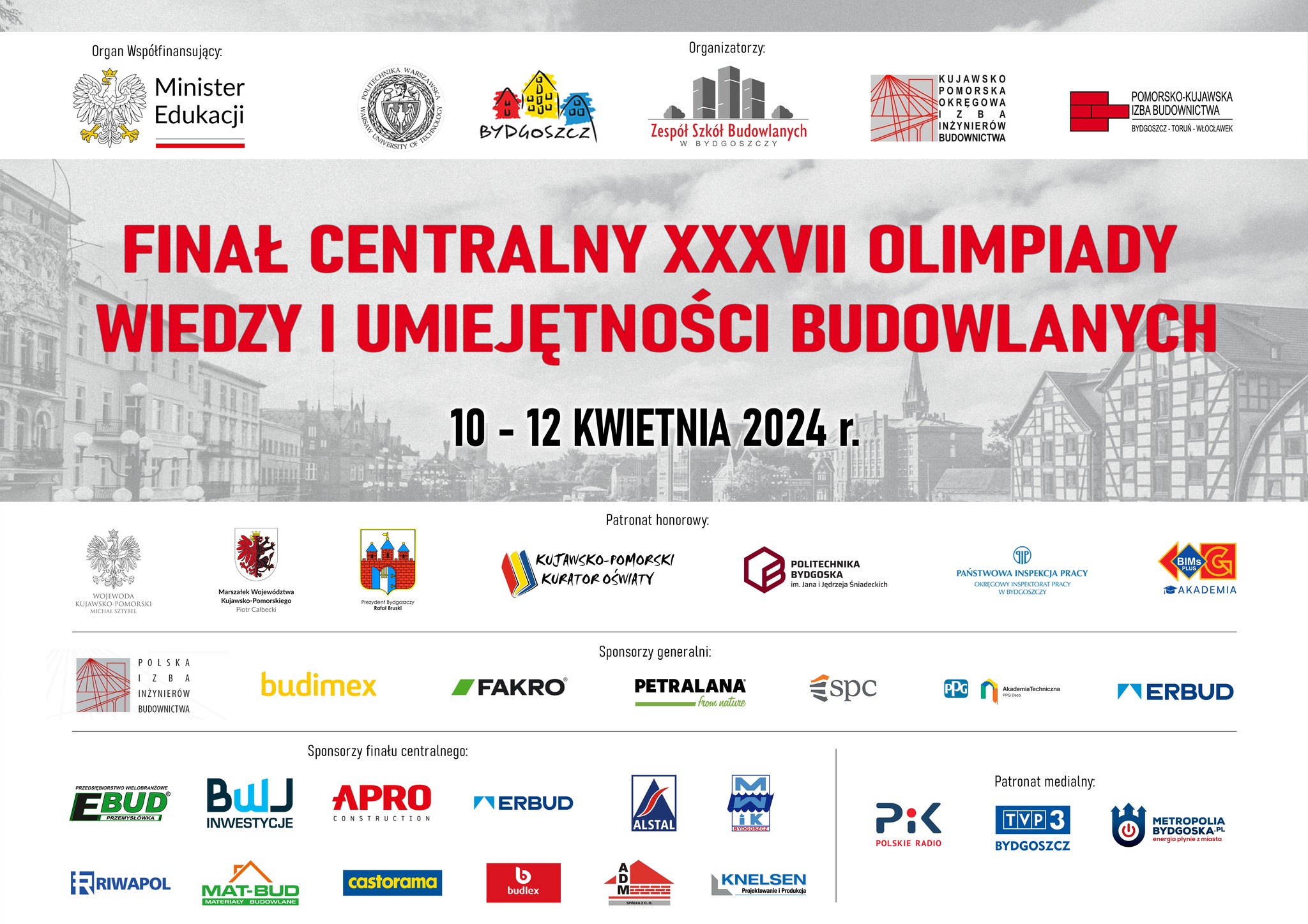 Organizatorami FINAŁU byli: Wydział Inżynierii Lądowej Politechniki Warszawskiej, Miasto Bydgoszcz, Zespół Szkół Budowlanych w Bydgoszczy, będący członkiem Polskiej Izby Budownictwa, Kujawsko – Pomorska Okręgowa Izba Inżynierów Budownictwa oraz Pomorsko-Kujawska Izba Budownictwa.