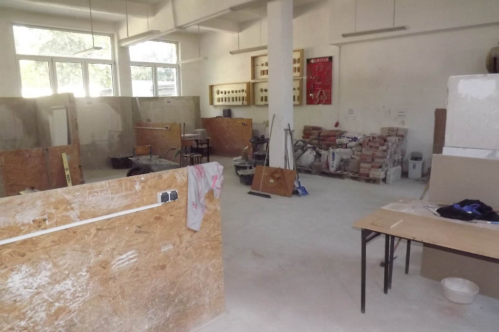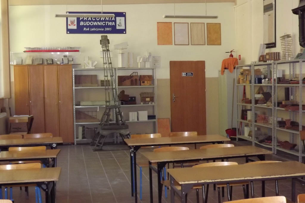 - budynek nr „C”, w którym znajdują się: stacja kontroli pojazdów, warsztaty szkolne, sale dydaktyczne, pracownie ćwiczeń praktycznych,